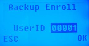 Enter the User ID number for which you would like to add backup enrollment. Press ‘OK’.