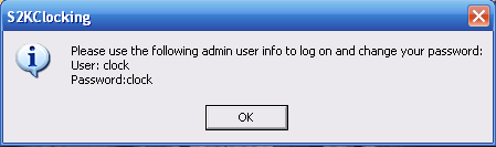 Click OK. Use the User name and Password above to log on in the next screen. You will choose your own user name and password later.