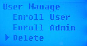 To delete a user/admin that has a fingerprint and password stored, press ‘MENU’.