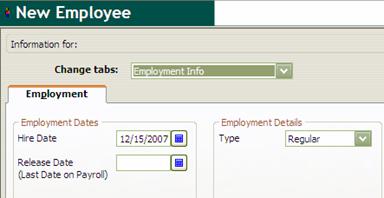 This section is used to enter information such as hire date, release date, and type of enrollment.