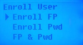 Enroll FP (fingerprint) is selected in the Enroll User Menu. Press ‘OK’.
