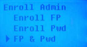 Arrow down to select ‘FP & Pwd’. Press ‘OK’.