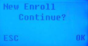 To save the new enrollment, press ‘OK’. (To start over or cancel, press ‘ESC’)