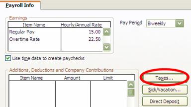 In the employees Payroll Info menu, click on Taxes.