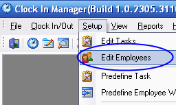 To go ahead and enter an employee into ClockMeIn, click on Edit Employees in the Setup drop down menu as seen below.