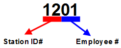 The number you choose should be 4 digits, the first 2 numbers identifying the station # (a number of your choice) and then the second 2 numbers for the employee # as seen below.