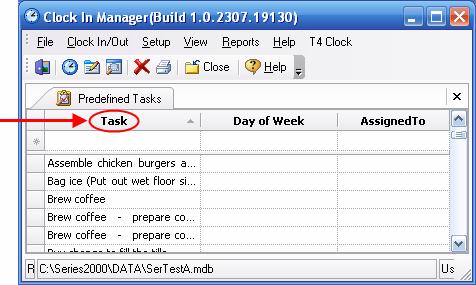 You can sort tasks by clicking on Task in the Task Column as shown below. This will sort all the tasks in alphabetical order so you can find the task you would like to edit easily.