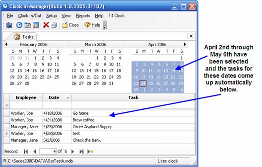 To view tasks that have already been entered, click on a specific date or click and drag on the calendar to select any range of dates.