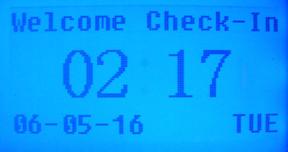 When the machine is connected to the power source and before the power button is pressed, the screen will display the welcome screen above with time and date.
