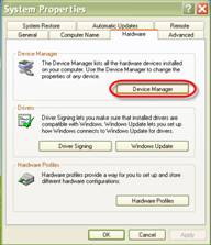 To do this, right click on My Computer and click on Properties to bring up the window below. Click on the Hardware tab and then Device Manager.