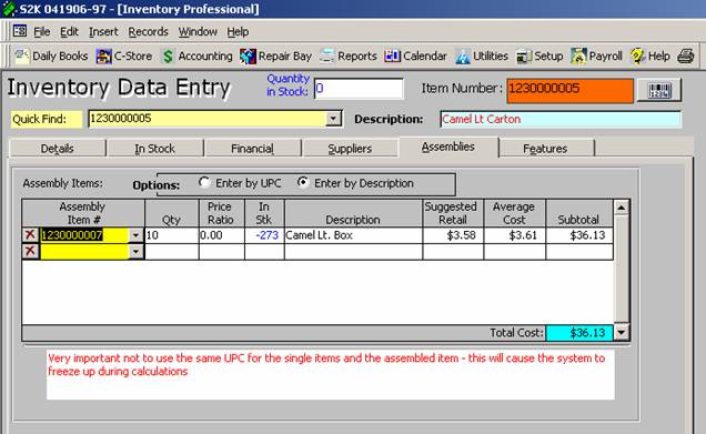 packs of cigarettes, S2K will recognize it as 1 carton of cigarettes. How
