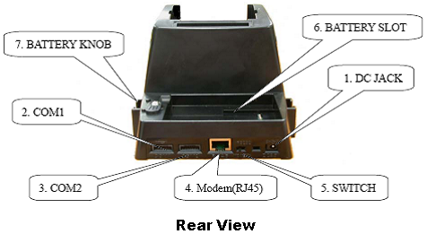 5. SWITCH: for selection between RS232 serial (COM1 & COM2) and Modem (RJ45) modes. ( USB connection is not affected.)