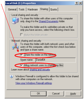Open My Computer > Right click on the C Drive > Sharing and