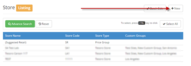 You can add a new store by clicking NEW and entering details on the store. Please note that S2k is currently doing this setup for you initially but you can edit fields as needed.