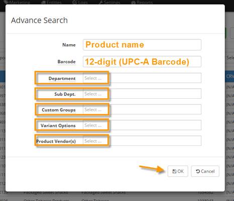 To search for a specific item(s) enter the name of the item(s), ignore the rest of the window, and then click OK to continue. This will generate a list consisting of products from the catalog with that include that name.