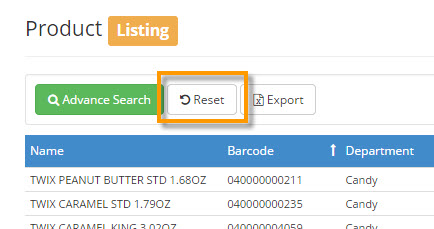 To RESET the Product Log to view all of the items then click the RESET at the top of the catalog.