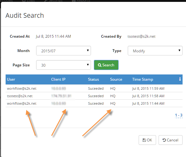 Results show you the user, IP and when the changes were made along with if the change was successful.