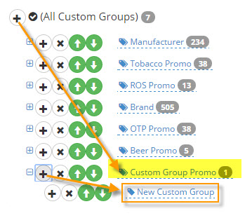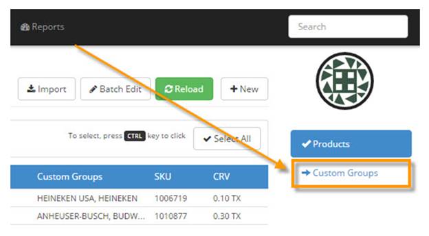 From the Products Catalog, click the Custom Groups link on the right side of the window (pictured below).