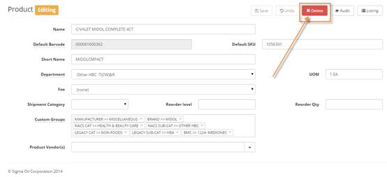 To delete an item, go to its detail from the Products Catalog and then click Delete.