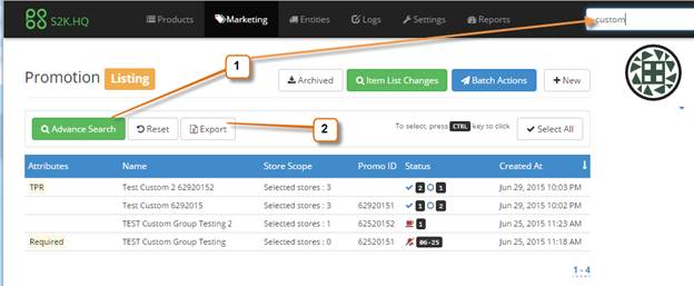 1- Search for the promotions you wish to export using the search tools provided (see above)
