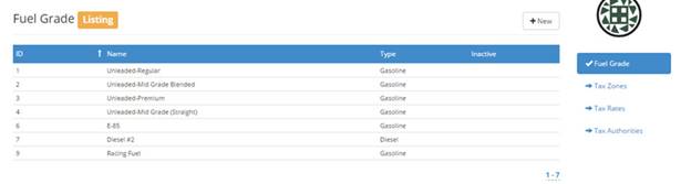 You can view the fuel grades from these screens. All edits are done by S2k admin