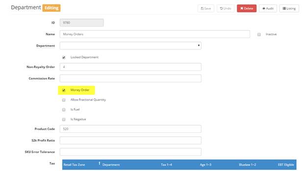 This is a flag sent to the POS when the departments are setup via S2k. This would only be checked for your Money Order department and Sub-Departments.