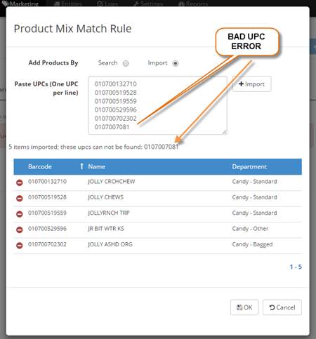 2- Click Import when done, items will appear at the bottom, if you had a bad upc, an error line will tell you and ignore that item. You can repeat as needed.