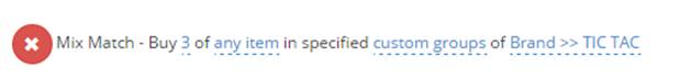 Example below will apply when 3 items are purchased from the custom group Tic Tac.