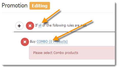 Product Combo Rule: This is to choose items from 2 different lists that have to be purchased in the same transaction to qualify for the promo.