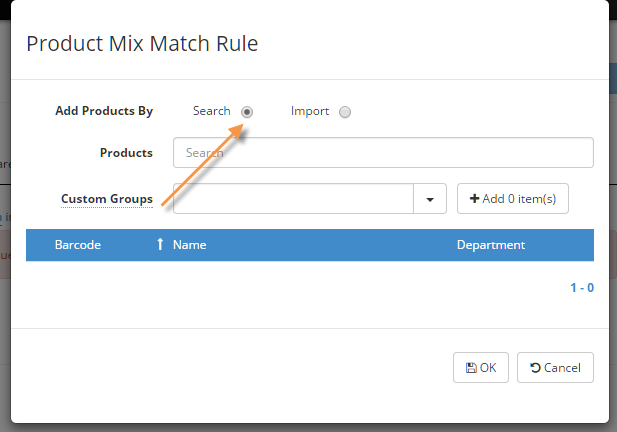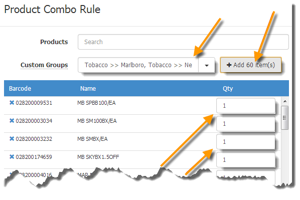 Select value according to your selection, you can start to enter the SKU # or the SKU Description in the “Products” or “Custom Group” field: