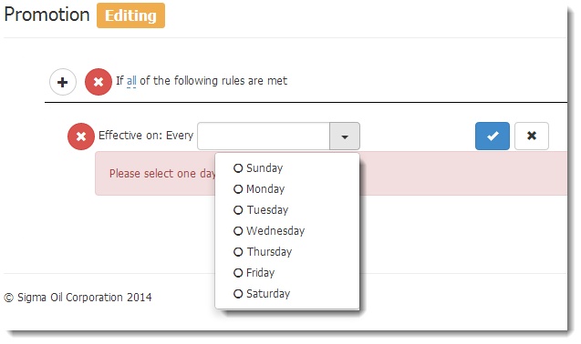 Weekday Rule: This is to choose day(s) of the week that qualify the promo. You can choose 1-6 days of the week.