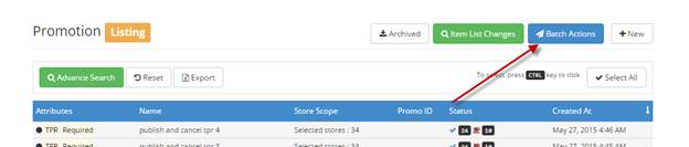 You can also choose multiple promotions from the manage promotions screen. Simply use the ctrl key and highlight all the promotions that you want to choose and then click Batch Actions at the top of the screen.