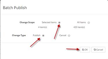 When ready to publish (send the promotion to the stores in scope) you can go to the individual promotion, click on it and then select the publish button at the top. If you are missing any required criteria, an error will pop up letting you know. Then you can correct and republish.