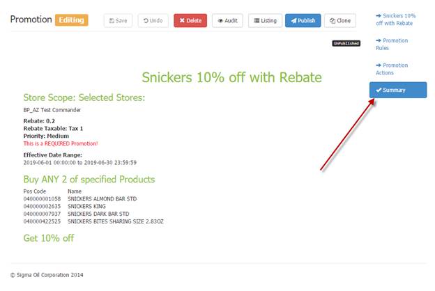 Shows you a summary of what your promotion is setup for. Click SAVE when done with reviewing and setting up your promotion.