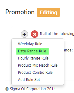 2. The second step is to setup the Promotion rules for the TPR…choose Promotion Rules on the right, then enter the date range for the TPR. THIS IS REQUIRED. Click the + sign and choose “Date Range Rule”