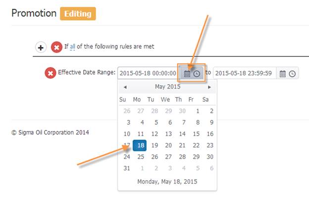is to choose a start and end date of the promo. Click the Calendar symbol