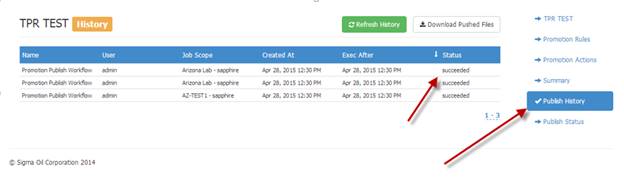 Once you have published your TPR you can view the Publish History to see that it was published and what time and by what user and if successful.