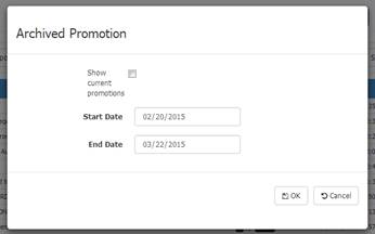 In the pop-up window, input the appropriate date range for your search of archived promotions and click the OK button.