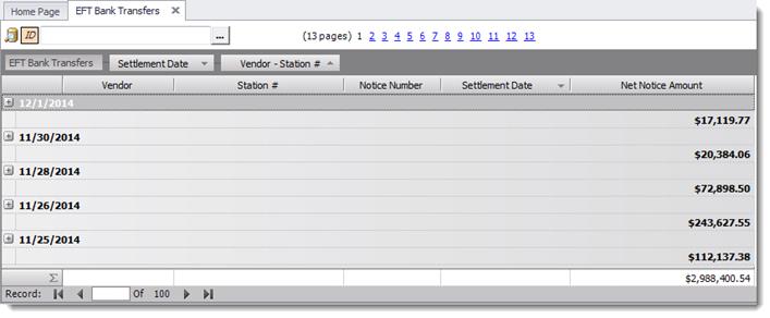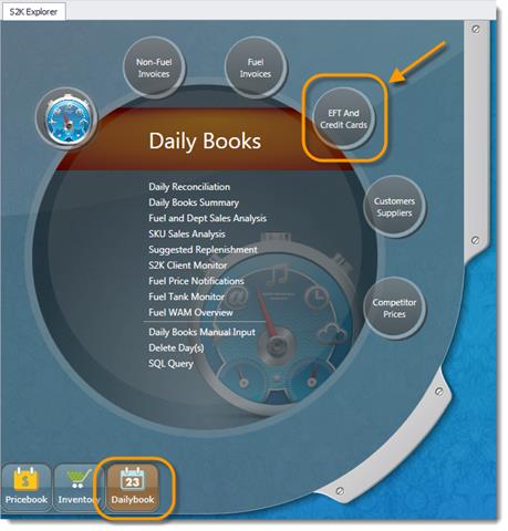 To view EFT information, select Daily Books->EFT and Credit Cards