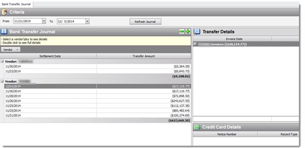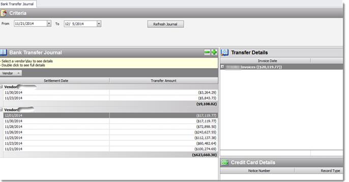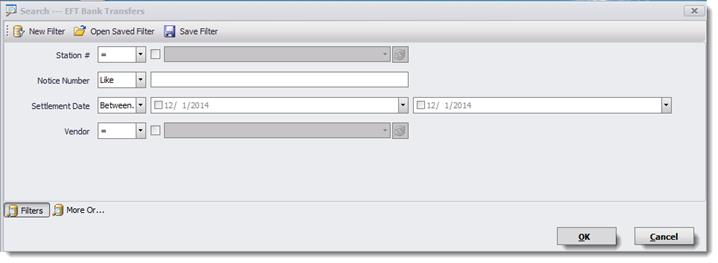 Enter the search criteria and click ok to search. The EFT Bank Transfers window will open.