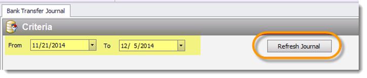 To change the date range, update the FROM and TO date selections and click the refresh journal button.
