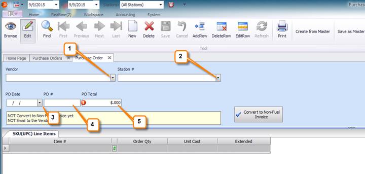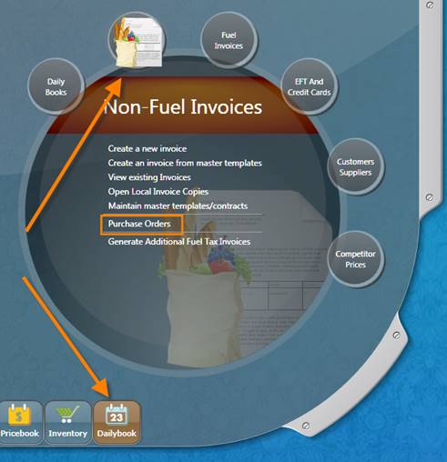 From the Daily Books menu go to Non-Fuel Invoices and choose Purchase Orders:
