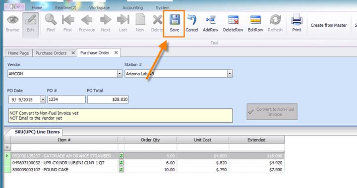 You can convert to Non-Fuel invoice by clicking the button (see below). This will create a nonfuel invoice for the vendor with all the items from the purchase order. You can then find it in the nonfuel invoice list and edit as needed.