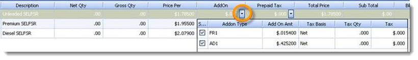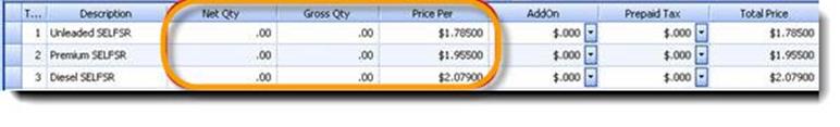 Next, enter in the Net and Gross Qty as well as price per gallon for each fuel grade that is on the invoice.