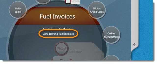 To search for fuel invoices, from the Daily Books Menu go to Fuel Invoices, then ‘View Existing Fuel Invoices’.