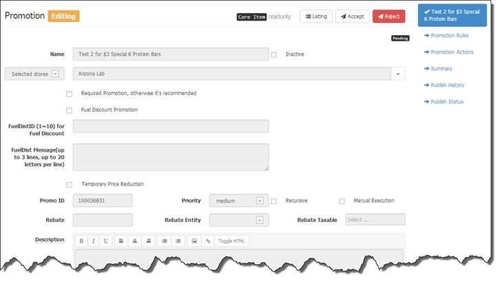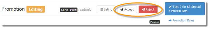 To Accept or Reject one item at a time, you can click and open one of the listed Pending Promotions.