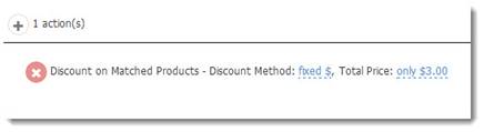 The actions for the rule pictured above is a discount to the fixed price of $3.00.