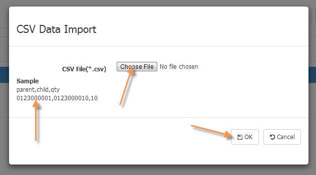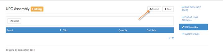 To import assemblies from a CSV file, simply go into an item to the UPC assembly screen and click IMPORT