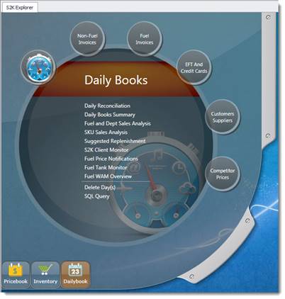 This is where you can access the three main menu options: Price Book, Inventory, and Daily Book.