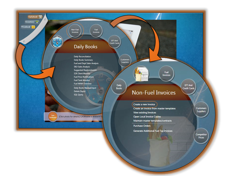 As indicated in the picture above, click the Daily Books button then click the Non-Fuel Invoices bubble. The available links will change.
